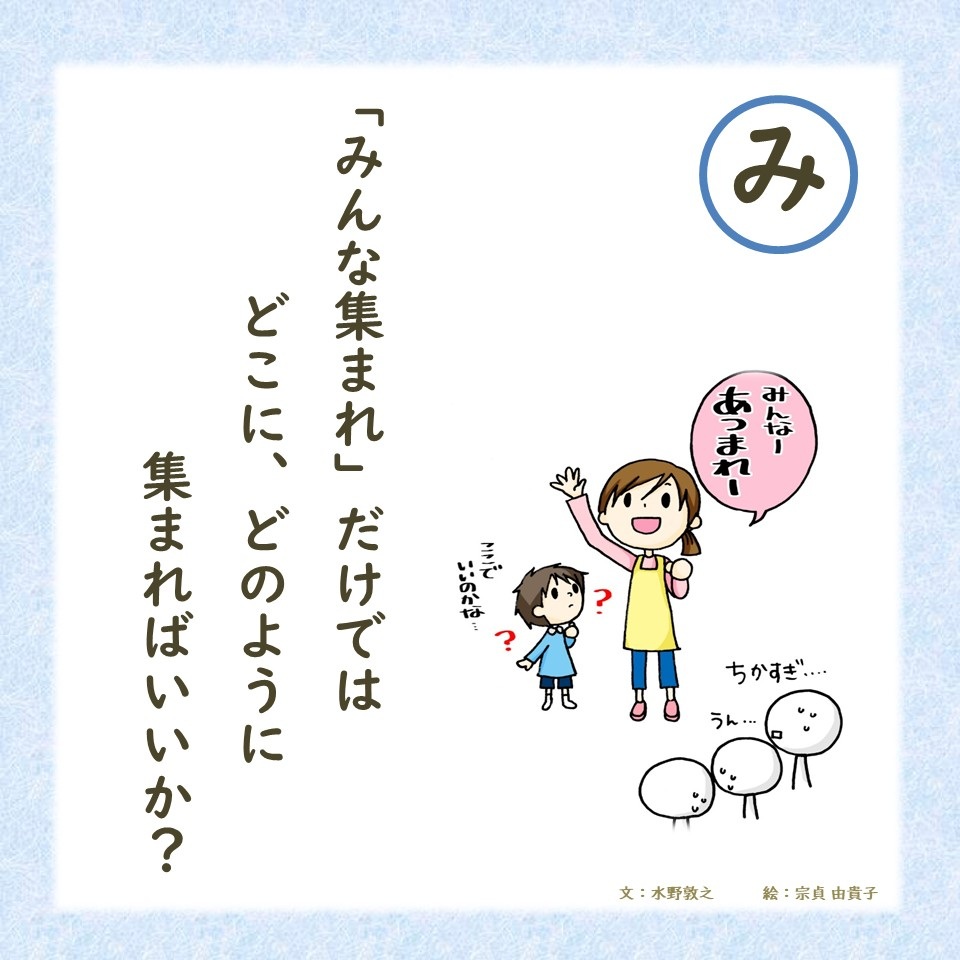 【み】「みんな集まれ」だけでは どこに、どのように集まればいいか?