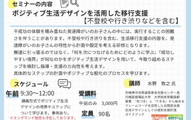 NPO法人こんぱすセミナー 『ポジティブ生活デザインを活用した移行支援』(不登校や行き渋りを含む)の内容です! http://www.npo-compass.com/seminar.php